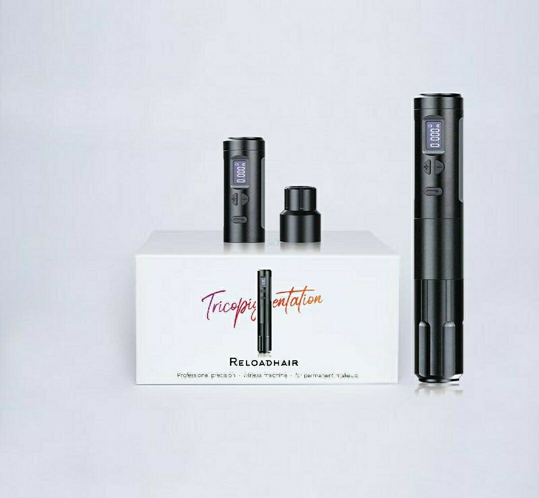 • Dermographe spécial Nano-pigmentation capillaire Reloadhair 41P , Machine de tatouage professionnelle compatible toutes aiguilles pour maquillage permanent.